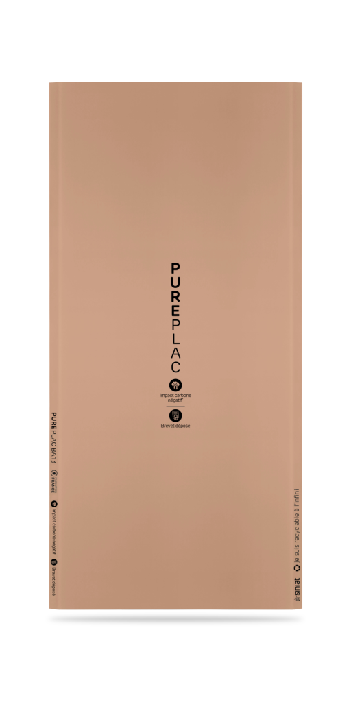 Pureplac intègre des matériaux biosourcés d’origine végétale issus de filières durables (Du bois brut issu d’une filière locale et responsable), qui ont capturé le carbone atmosphérique pendant leur croissance, lui permettant de stocker plus de CO2 qu’elle n’en émet durant sa fabrication d’où son impact carbone négatif en sortie d’usine de production.