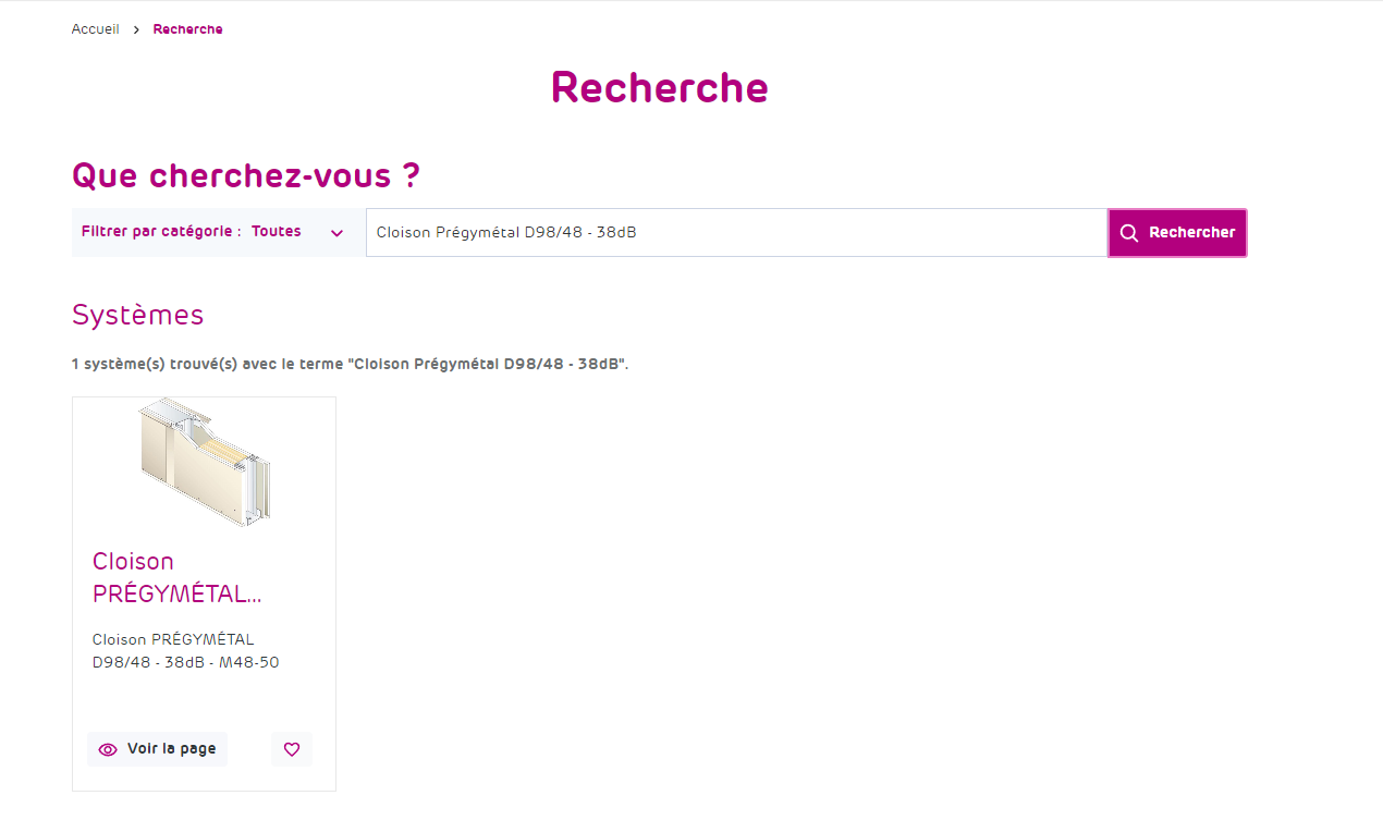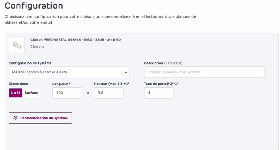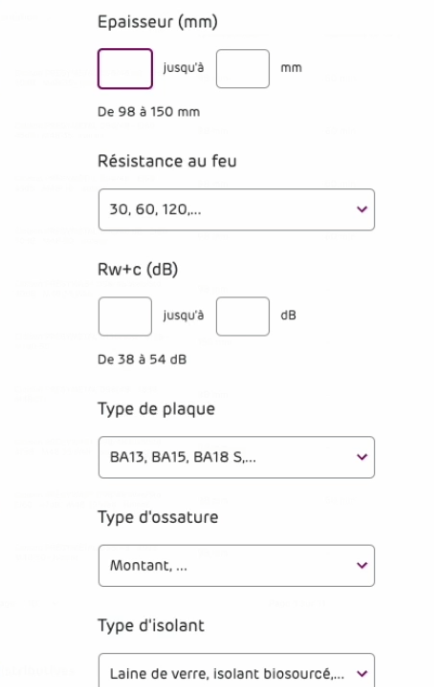 Afin de trouver le système « cloison » ou « contre-cloison », Utilisez notre barre de recherche et tapez la cloison ou contre-cloison que vous désirez.