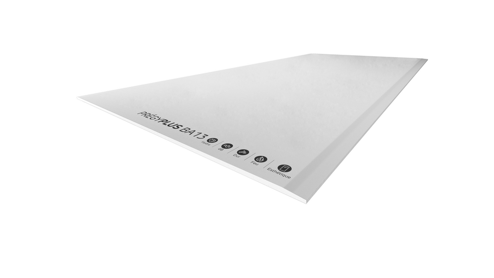 Prégyplus® est la plaque de plâtre BA13 qui multiplie les performances pour répondre à toutes les exigences des différentes pièces de la maison : performance acoustique, protection contre l'humidité, résistance aux chocs, protection incendie, esthétique.