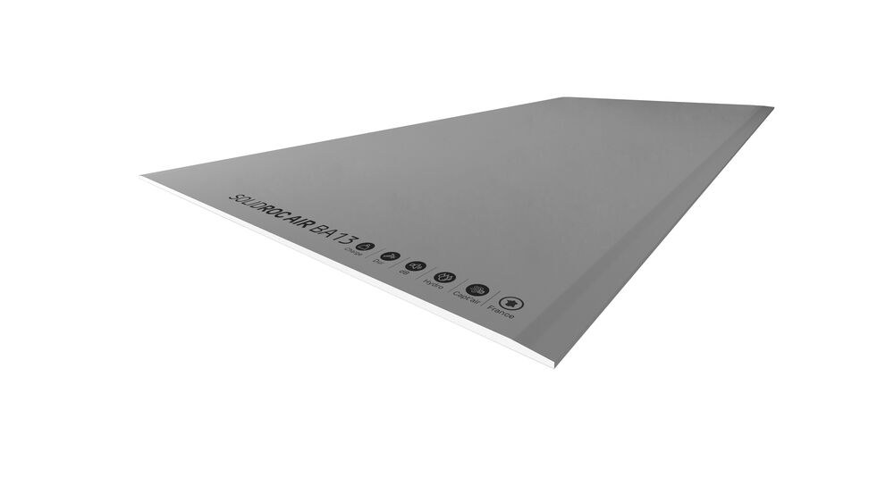 Solidroc Air® BA13 est la plaque de plâtre multifonction Très Haute Résistance pour tous les projets nécessitant des performances élevées et des solutions de cloisons et contre-cloisons améliorant la qualité de l'air intérieur.