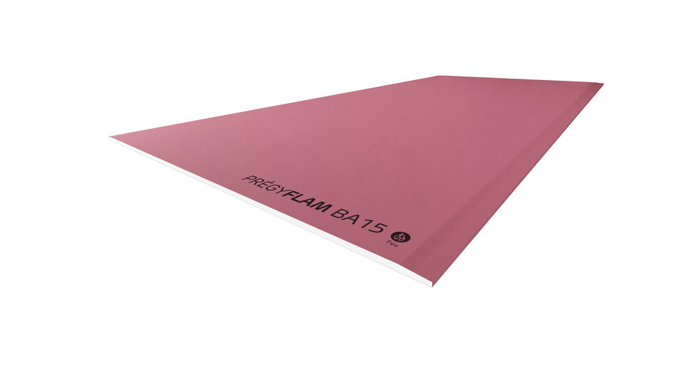 Solution de cloison, plafond et protection des structures, hautes performances incendie. PRÉGYFLAM BA15 est composée d'un cœur en plâtre de haute densité compris entre 2 parements cartonnés.