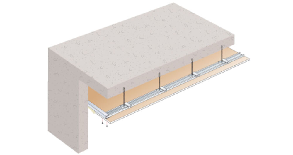* Plafond à joints non apparents constitué par vissage de plaques de plâtre PRÉGYWAB® sur une ossature suspendue à la structure support par des suspentes PRÉGYMÉTAL WAB ou Ultra WAB.